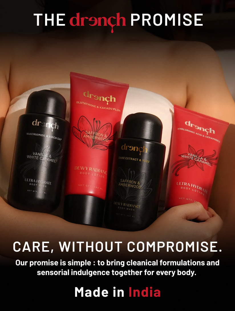 The Drench Collector’s Box brings together our complete bodycare lineup — two cleansers and two lotions designed to work across hydration, barrier comfort, and radiance. Thoughtfully curated for versatility and indulgence, this box lets you tailor your routine based on how your skin feels, while delivering sensorial textures and fragrances from shower to skin.